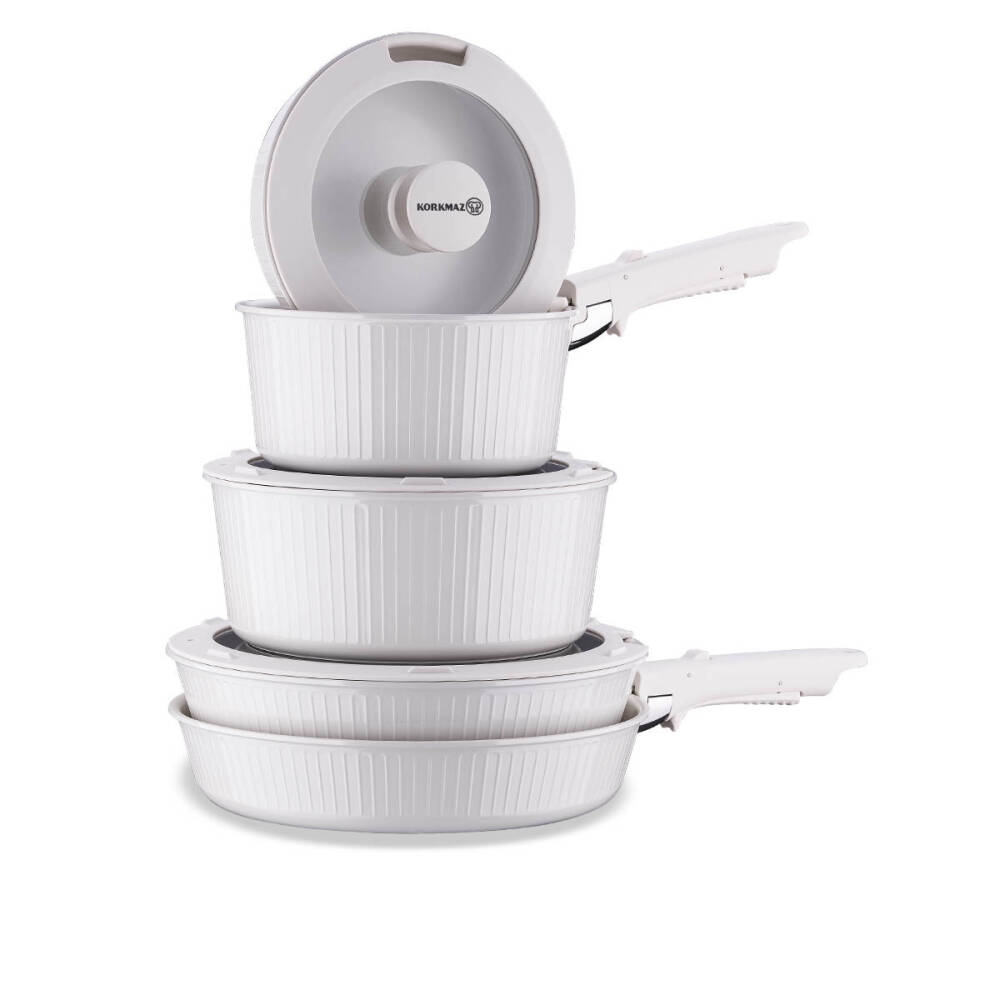 Korkmaz Nova Pratika 8 Parça Bej Tencere Seti: Mutfakta Şıklık ve Fonksiyonelliğin Buluşması