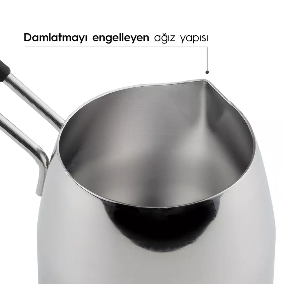 - Damlatmayı Engelleyen Ağız Yapısı: Özel tasarımlı ağız yapısı, cezvenin dökme işlemi sırasında damlama sorununu engeller, böylece temiz ve düzenli kullanım sağlar.