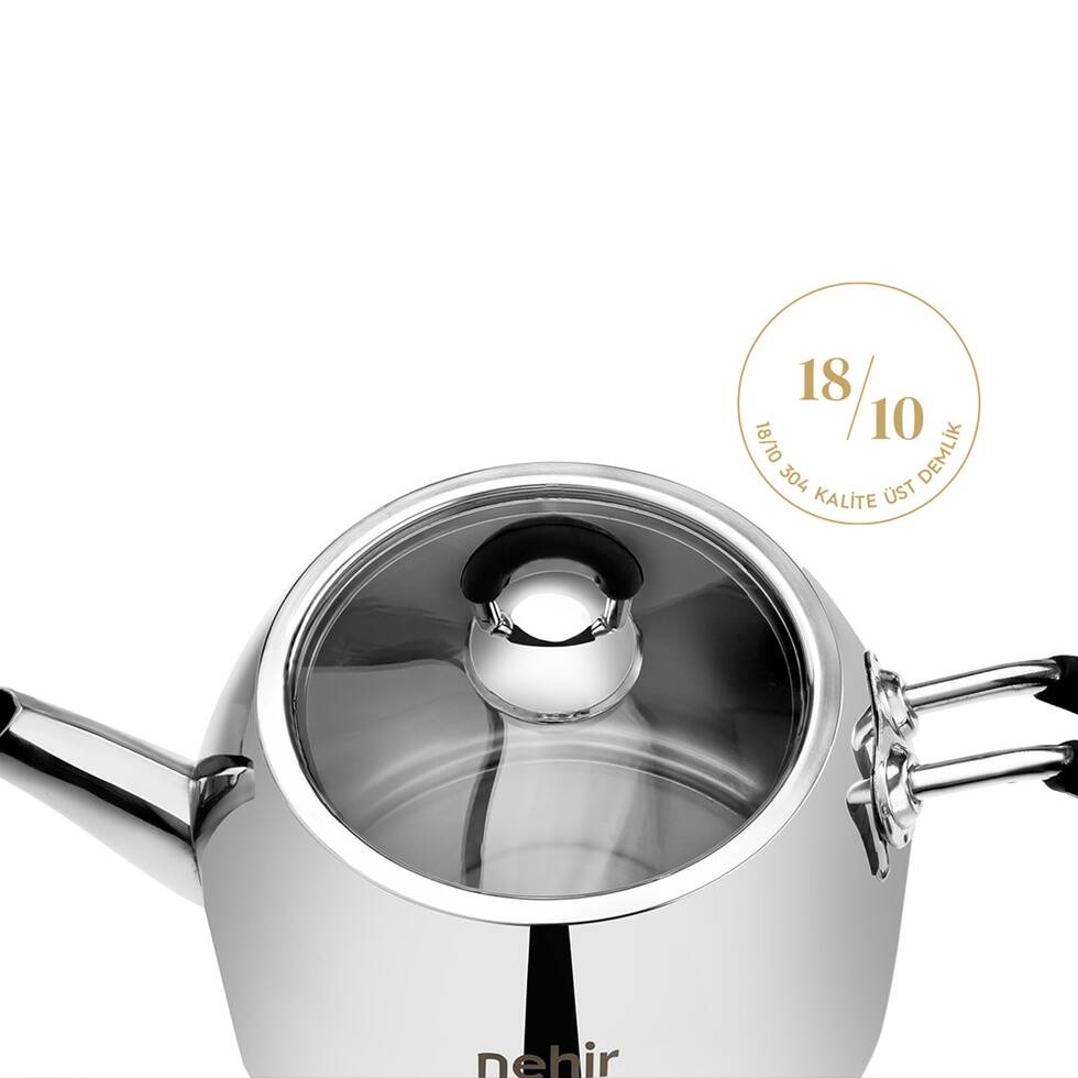 • 18/10 304 Kalite Üst Demlik: Üst demlik, 18/10 304 kalite paslanmaz çelikten üretilmiştir ve uzun ömürlüdür.