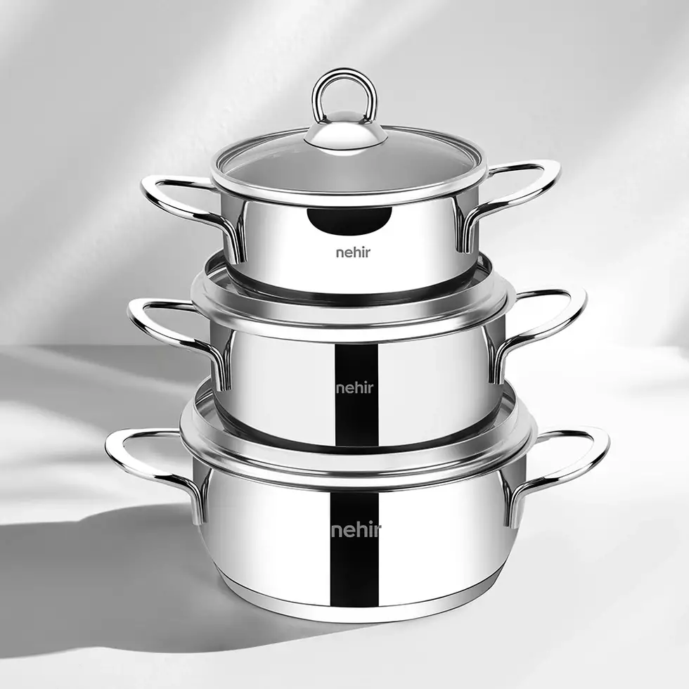 Silver 6 Parça Paslanmaz Çelik Mini Tencere Seti (12-14-16 cm)