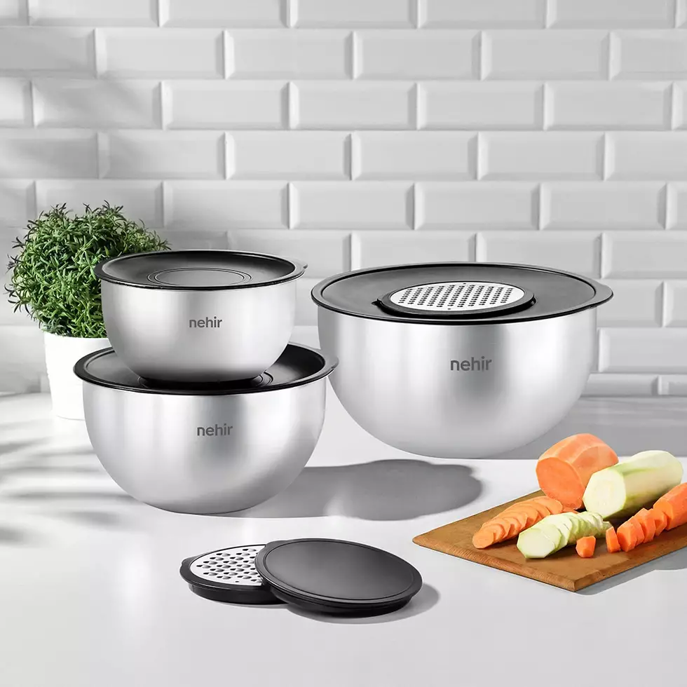 - Birinci Sınıf Paslanmaz Çelik: Silver Çelik 9 Parça Rendeli Karıştırma Kabı Takımı, %100 18/10 Cr-Ni paslanmaz çelikten üretilmiştir. Bu malzeme, dayanıklı ve uzun ömürlü kullanım sunar.